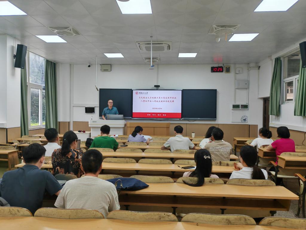 6月20日上午,学院党委副书记、院长蒋晓俊同志在屏风校区9110教室为教工第二党支部全体党员讲授深入贯彻中央八项规定精神学习教育专题党课。此次党课是学院深入贯彻中央八项规定精神学习教育的重要环节,旨在筑牢教师党员思想防线,深化作风建设。