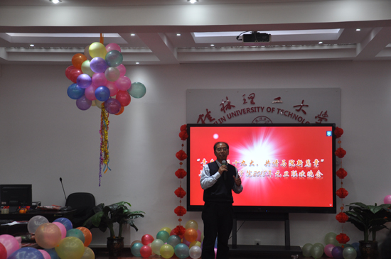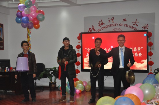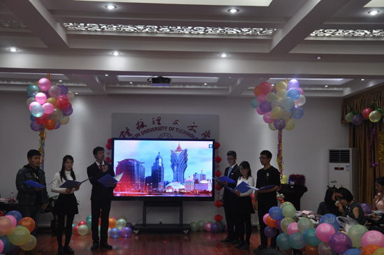 12月28日晚上19:00,学院在雁山07415举行了以“青春瞩目十九大,共谱马院新篇章”为主题的2018年研究生元旦联欢晚会。学院部分硕士生导师出席晚会,师生齐聚一堂,会场张灯结彩,热闹非凡。