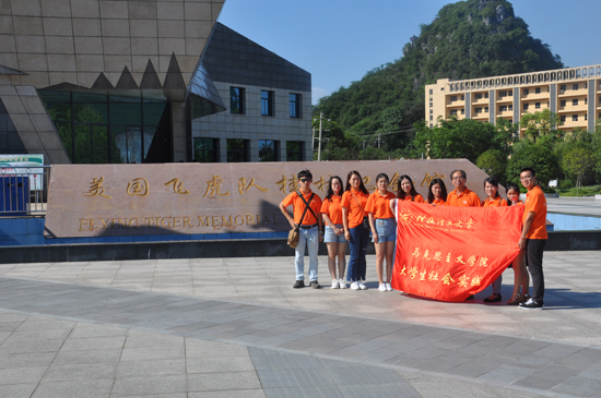 最后,实践团成员一同参观了美国飞虎队桂林纪念馆,重温了中美两国人民在二战时期共同并肩作战的历史,品读了在这段历史中,许多美国飞虎队队员与中国人民可歌可泣的感人故事,为更好地了解和传播二战时中美两国共同抗战的历史提供了极好的机会。