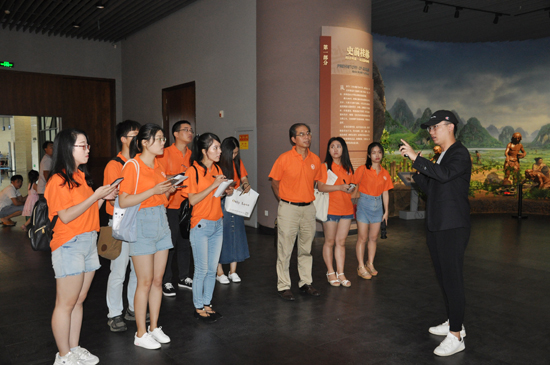 活动中,实践团成员首先参观考察了桂林博物馆,桂林博物馆有三层不同主题的展馆。分为情系桂林作品展馆、桂林市规划展示馆、漓水春秋、靖江遗韵、画里人家等多个不同主题的文化陈列馆。在博物馆解说员的带领下,成员们参观了漓江春秋历史文化陈列馆,漓江春秋以桂林历史发展为基线,展示桂林的史前文化、瓯越文化、廊道文化、佛教文化、科举文化、山水文化、抗战文化,充分展示桂林作为国家历史文化名城的深厚历史文化底蕴,吸引了成员们驻足赏析,也使成员们深切感受了桂林从古至今的历史文化。