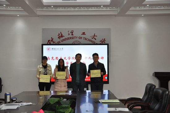为深入学习党的十九大精神,提高研究生学术科研能力和论文写作水平,1月3日上午,学院在雁山校区07415会议室举行研究生学习十九大精神学术报告会。学院党委书记王青山教授、副院长肖祥教授、副院长梁英教授出席报告会。学院全体研究生参加报告会。