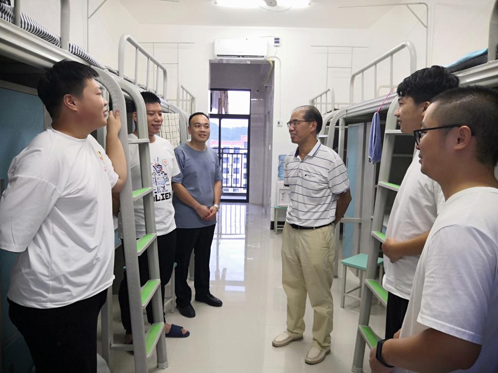 为帮助学院2021级新生更快的融入校园生活,深入了解新生的生活状况和思想状态,9月12日下午,学院党委书记王青山、院长助理吴杨义、莫天荣老师带领学院学生辅导员一起走访了学生宿舍,看望了2021级新生。