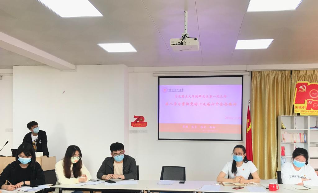 为深入学习贯彻党的十九届六中全会精神,从党的百年奋斗中汲取砥砺奋进的智慧和力量。3月18日下午,研究生第一党支部在雁山校区07513党员活动室召开了党的十九届六中全会精神专题学习会。党支部全体党员通过线上、线下相结合的方式参加了此次主题党日活动,会议由党支部书记李碧仙主持。