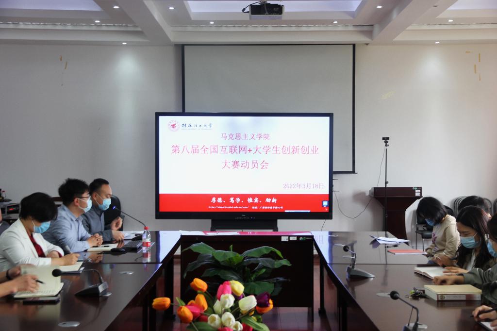 2022年3月18日上午,十大买球官网在雁山校区07415会议室召开了第八届全国互联网+大学生创新创业大赛动员会,学院党委书记耿俊茂、院长梁英、副院长吴杨义出席了大会,大会由院长助理莫天荣老师主持,全体研一、研二研究生参加了大会。