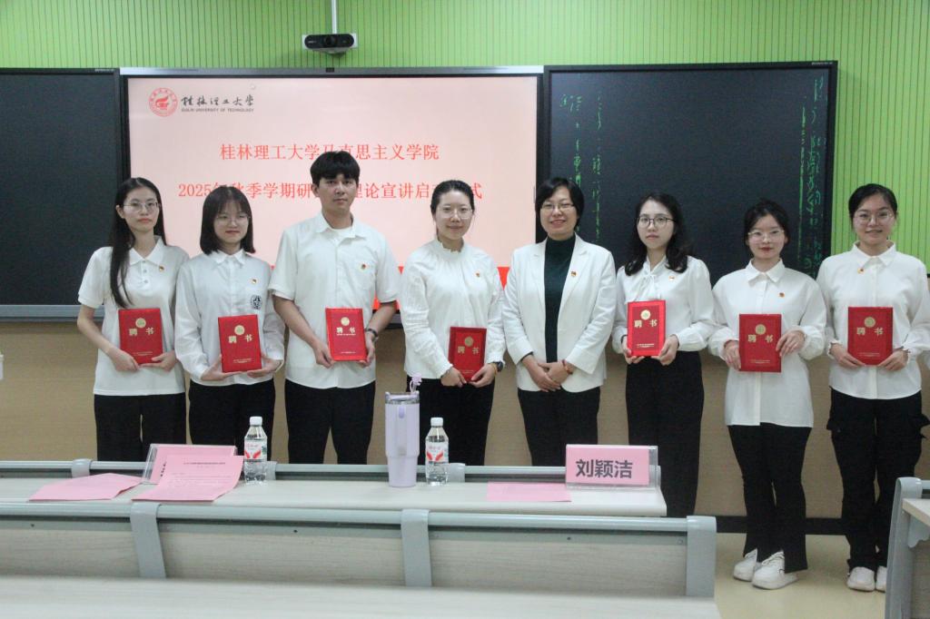 据悉,此次研究生理论宣讲共有70名研究生参与,宣讲将围绕党的二十届四中全会和民族团结教育两个主题开展。下一步,学院将根据宣讲工作安排,组织宣讲团成员深入到学校各二级学院、基层党团组织、社区等广泛开展理论宣讲活动,为学习宣传贯彻党的方针政策和党的创新理论贡献桂工马院力量!