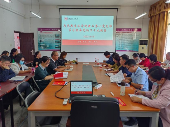 10月18日下午,十大买球官方网站教工第一党支部在雁山07407会议室,组织支部党员学习党的二十大精神,由学院党委书记耿俊茂领学讲授。