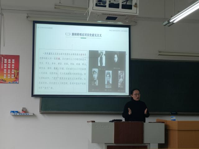 集体备课磨课分两个部分。首先,由教研室邱娟老师进行25分钟的现场微课授课展示,教研室老师共同观摩学习。展示课结束后,教师们围绕其教学设计、重难点突破、内容衔接、互动方法等方面进行磨课。此次磨课对任课教师是一次精彩的授课示范,同时观摩和磨课过程中对于如何更好进行教学的设计、组织与实施得到相互学习和借鉴。其次,根据事先收集的“人生观教育”和“理想信念教育”教学模块中问题、重难点等进行集体备课。教师们围绕难点部分如何设计更好破解、教学内容上应如何取舍和处理更加合适、案例如何引用更能凸显主题等问题展开热烈讨论。本次备课及磨课活动氛围轻松,教师们通过此次活动在教学的重难点突破、内容、方法等方面有了进一步提升。