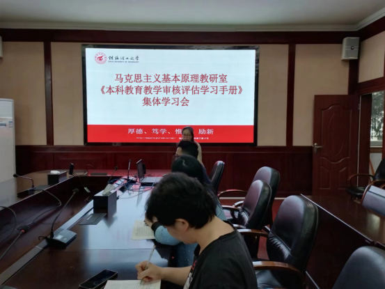 为进一步做好审核评估评建工作,推动基层一线教师积极参与到审核评估中,力争做到“人人了解评估、人人参与评估、人人都是评估对象”,4月27日,马克思主义基本原理教研室教师,依托线上线下相结合的方式,开展《本科教育教学审核评估学习手册(教师版)》集体学习会。会上,老师们逐一学习了校情校史、学校人才培养整体定位等多个方面的内容。结合学习内容,老师们明确表示,主动全力参与到评估工作之中,进一步深化细化落实审核评估工作各项任务,对标自查、对标总结、对标提升,以高度负责的精神状态做好审核评估工作。