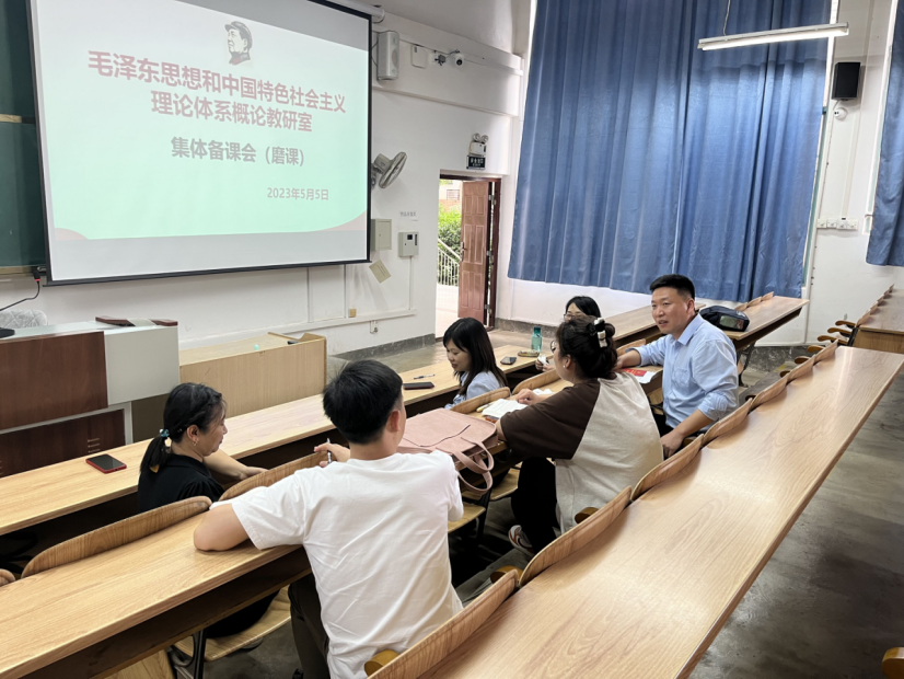 为深入落实学校本科教育教学审核评估的文件精神和工作要求,进一步提升十大买球官网教师教育教学水平。2023年5月5日,毛泽东思想和中国特色社会主义理论体系概论教研室在07320教室开展了集体磨课活动,本次活动由教研室主任杨公银主持,教研室全体教师参加。